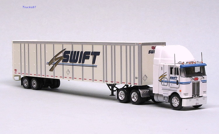 Peterbilt 362E - Truck tractor by Trucks N' Stuff, modified windshield, cab guard by Dennis Aust, airdam, exhaust stacks and tanks scratchbuilt; trailer by Bowser